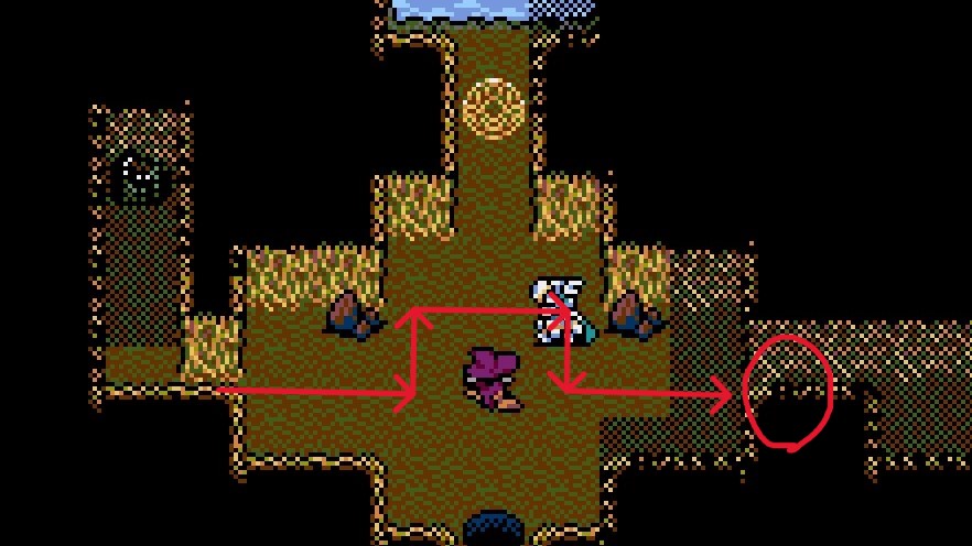 ボス前のエイン・シーがいるフロアで左向きに固定して矢印のように進むと必ず〇の位置でエイン・シーと戦闘になります (下からでも可能ですが落とし穴があるため)。