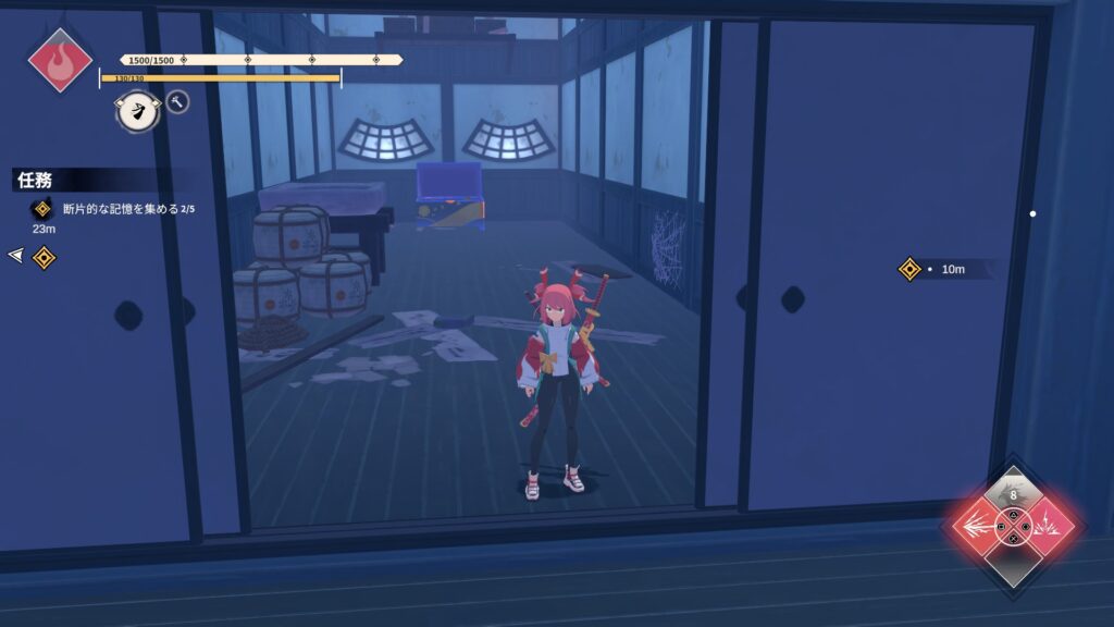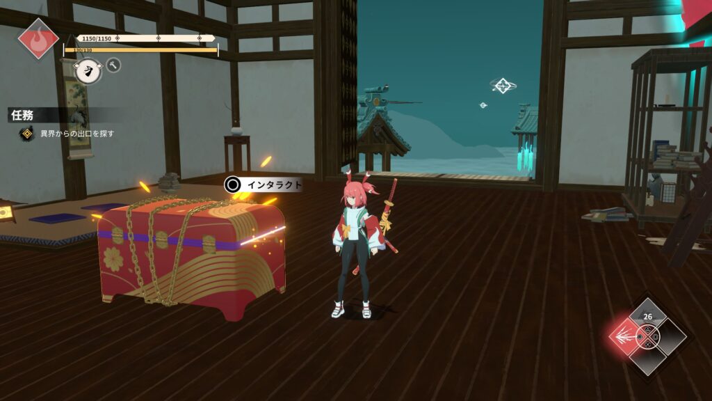 屋敷の中の襖を開けた小部屋。中身は刀の福守。
