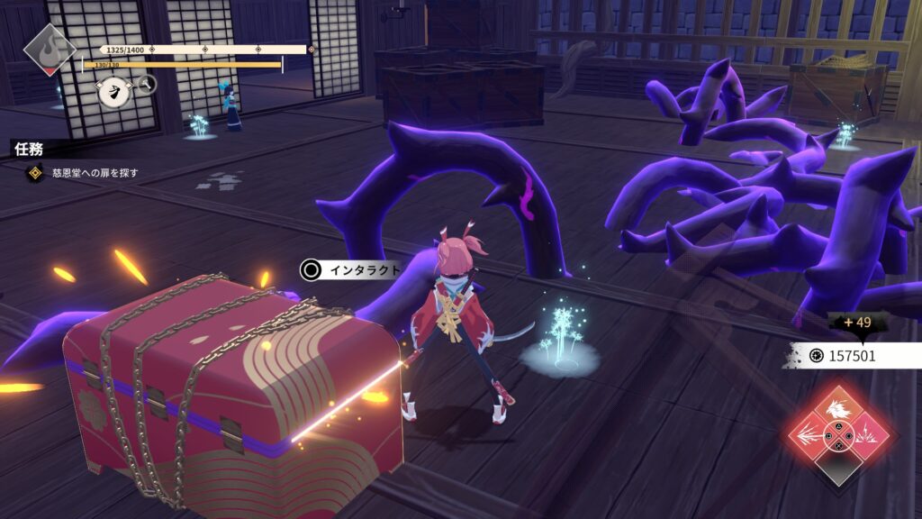 再度集めている最中に改めて宝箱の位置を確認したのですが、14か所しか見つけられていません。最後の1個何処だったかな…