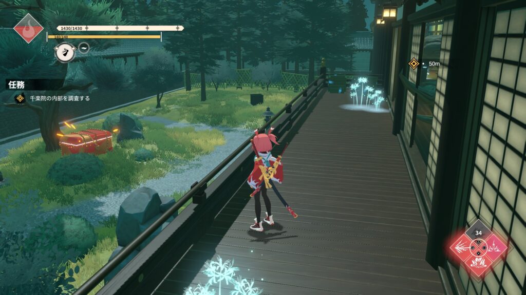 茜と戦った先の鉄球が転がってくる廊下の庭