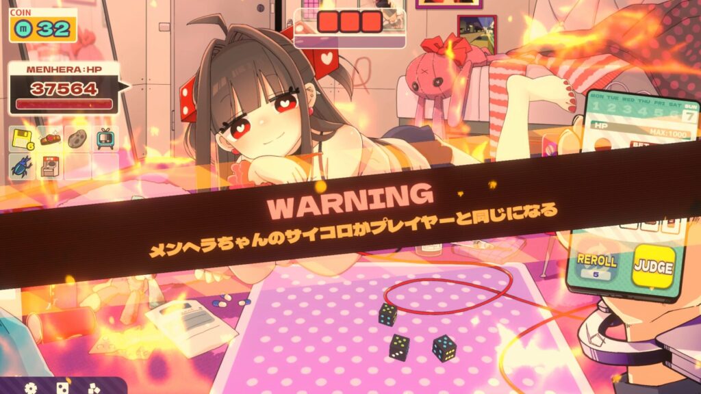 この時のメンヘラちゃんはHPが37000以上あり、またプレイヤーのサイコロと一緒になります。よって出目自体を改造するのは非推奨です。