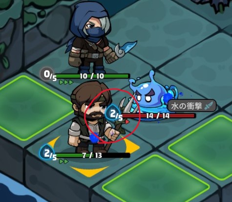 上の図は水属性が付与されたスライムです。赤〇で囲った数値が最大5まで蓄積されていきます。