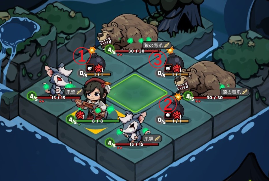 • 図のようにネズミと熊の間に爆弾を設置する