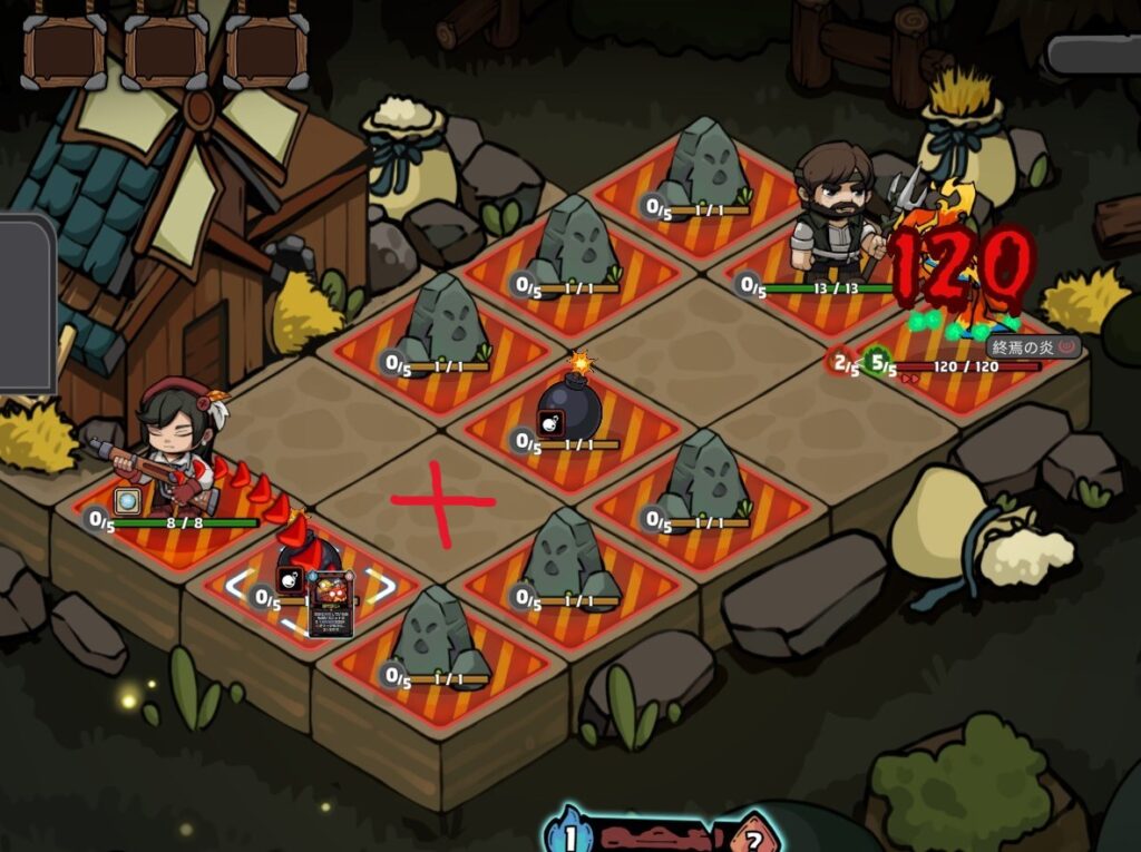 5まで蓄積されたスライムを農夫の草フォークで攻撃した場合、12のダメージを与えることが可能に。この属性攻撃を利用してステージを進めるのが基本です。