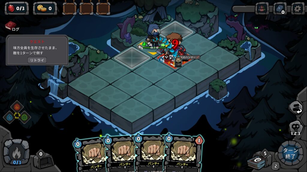 このほかカードで射程性能も違います。デモ版では遠距離攻撃はハンターしか使えません。