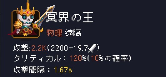 斬撃に呪い効果が加わり、召喚できる子分の数も増えた冥界の王様。状態異常が実装されたことによりいろんな戦術がとれるようになりました。たまに凍結した敵に一斉に襲い掛かる子分たちの火力は凄まじいです。
