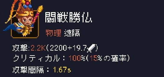 孫悟空の最終形態。如意棒を振りまわす時間とダメージも増えて、おまけに出血効果も加わりました。神器と組み合わせると恐ろしいダメージを叩き出します。さすが中国。