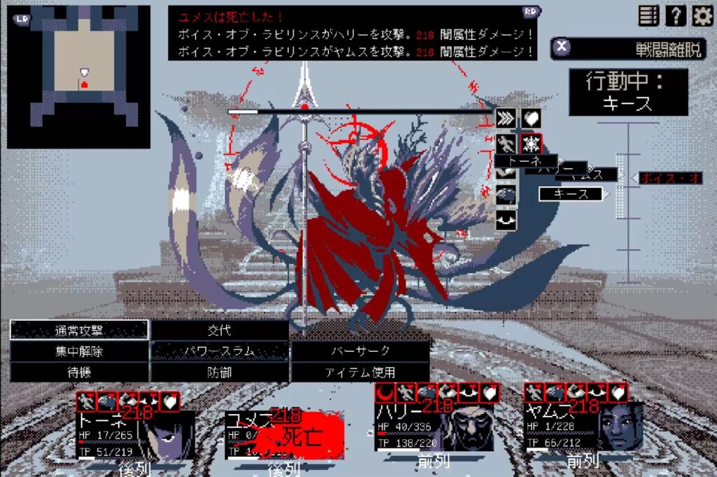 ここまで来るまでの理不尽さに慣れてしまったせいか、ラスボスの火力は意外と控えめです。ですがパーティにデバフ盛り、自分にはバフ盛りしてくるので簡単にはいかないでしょう。