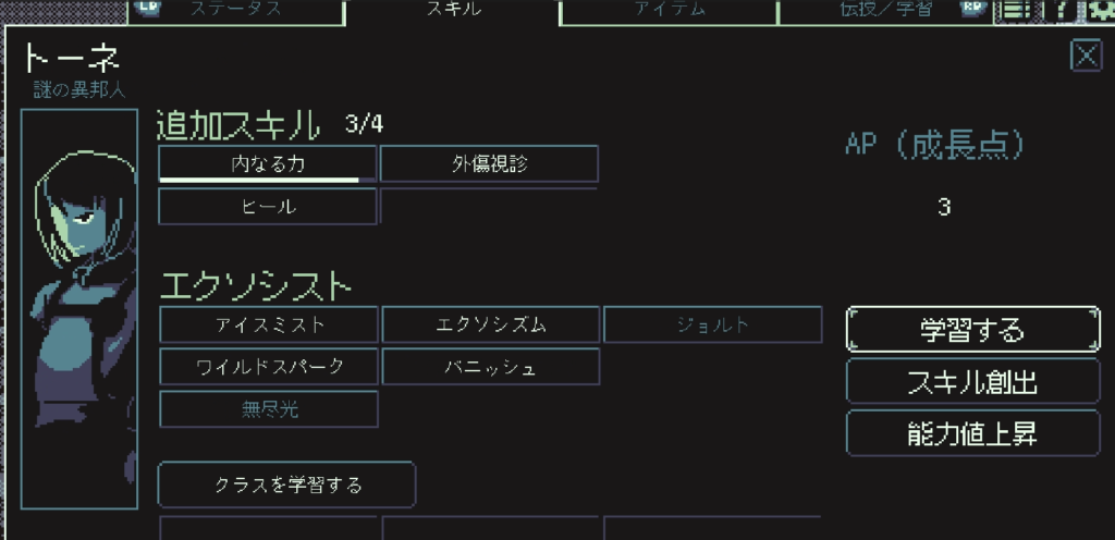 ヒール、中級魔法、自分のお気に入りのスキルを取りきったらあとは能力に振っていきましょう。物理なら筋力、魔法なら知恵ですね。特に知恵は回復量も上がるのでなるべくあげていきたいです。